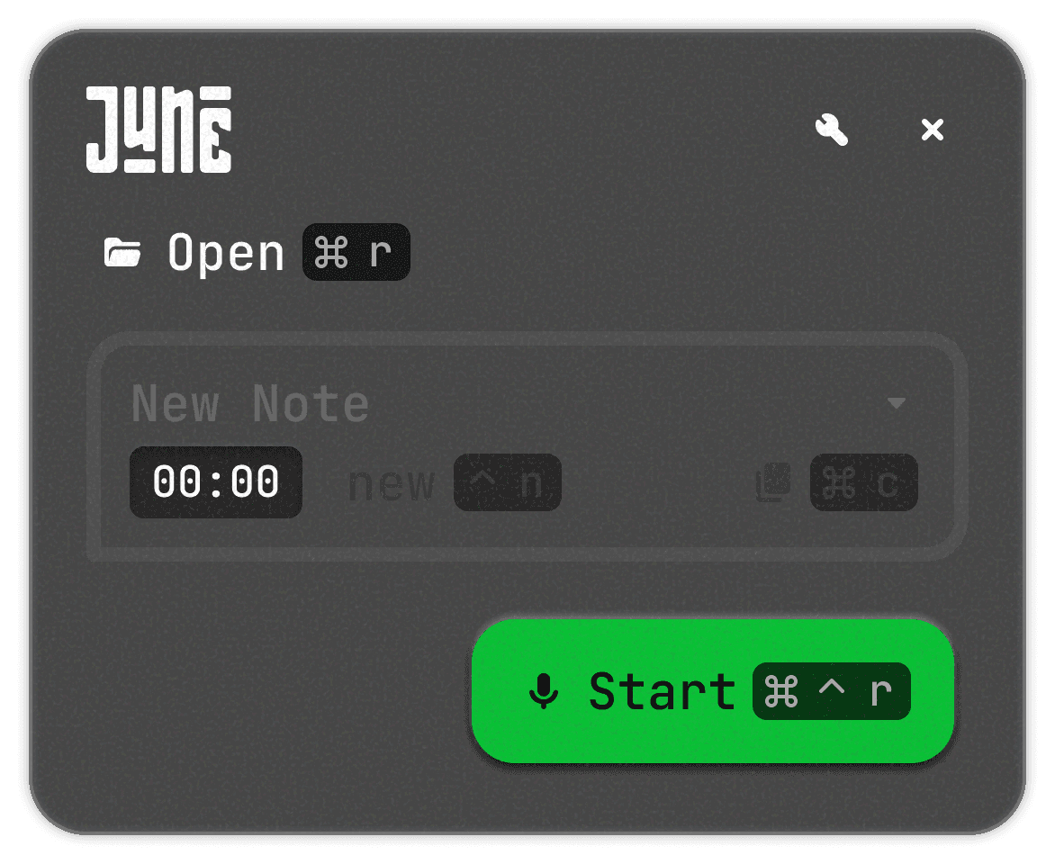 Launch June anywhere and turn your spoken thoughts into clean text in seconds.
