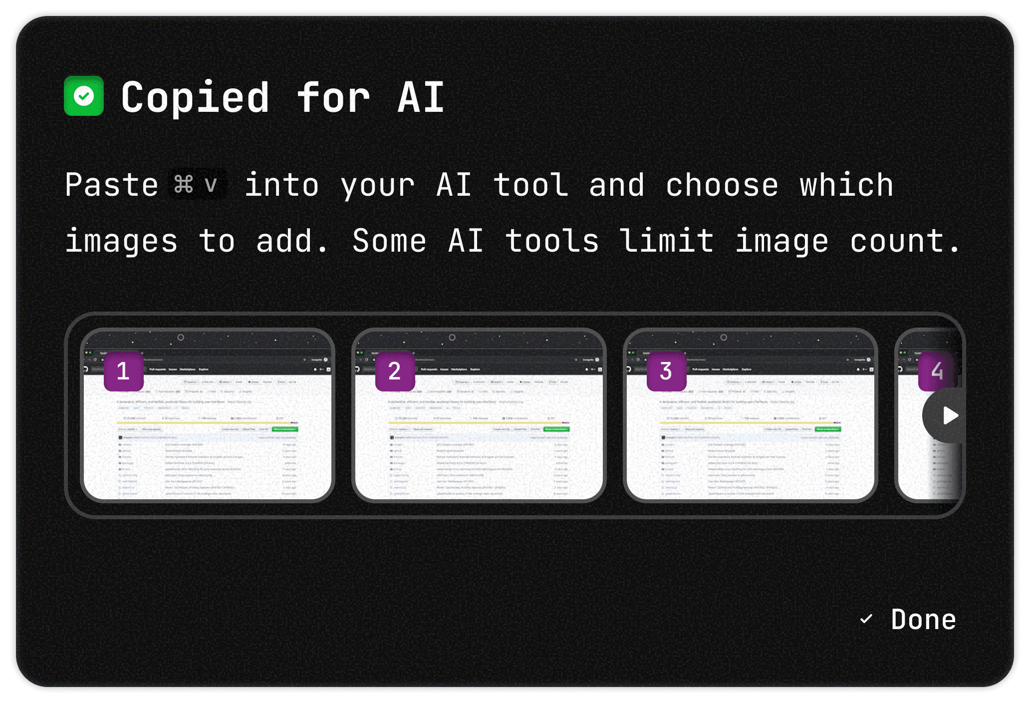 Copy your notes into any app or AI tool without extra explaining or cleanup.